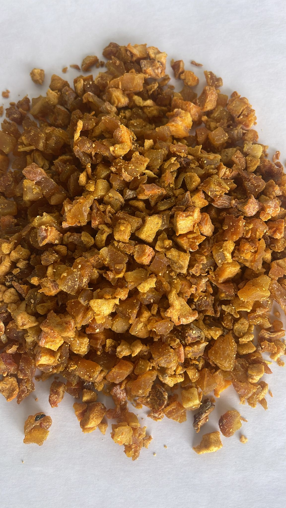 Ingredients: Dehydrated fruit mix (95%): Pear (Pear, Sulfur Dioxide), Peach (Peach, Sulfur Dioxide), Apple (Apple, Sulfur Dioxide), Ginger, natural flavorings, Turmeric.